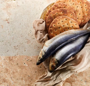 Jesus turns to them, smiles, looks them up and down and says, ‘I’m sure they’re getting a bit peckish. Why don’t you give them something to eat?’ Cue the dropping of jaws, frantic looks, and sudden rummaging in pockets. ‘Well, that’s a good idea and all but, well, we’ve only got… How many did you say, John?... Five measly little loaves and… what was that?... two?... two fish. I’m not sure that will be enough to go round.’
